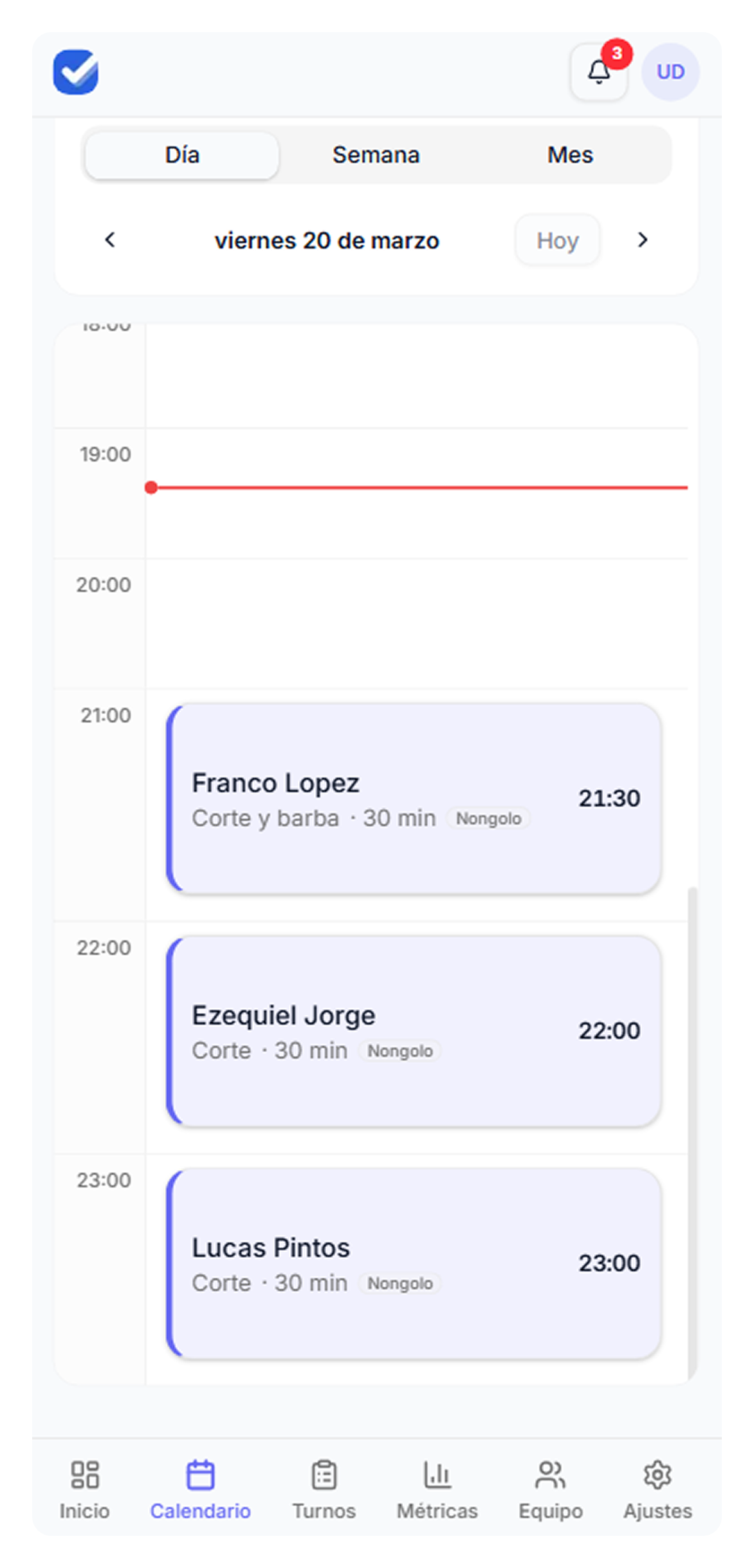 Organiza turnos, servicios y horarios de tu salon con una agenda digital simple para tu equipo.