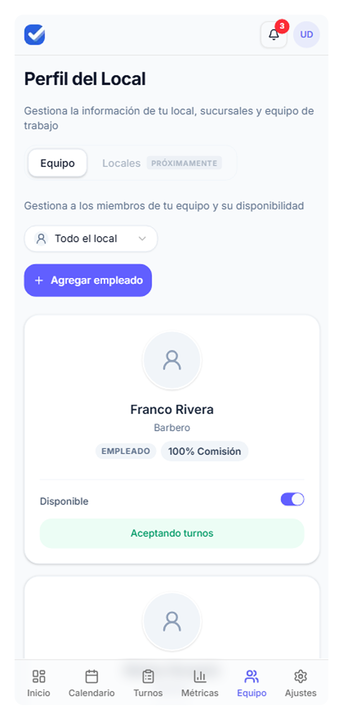 Gestiona reservas, equipo y recordatorios en una sola plataforma pensada para barberias en crecimiento.